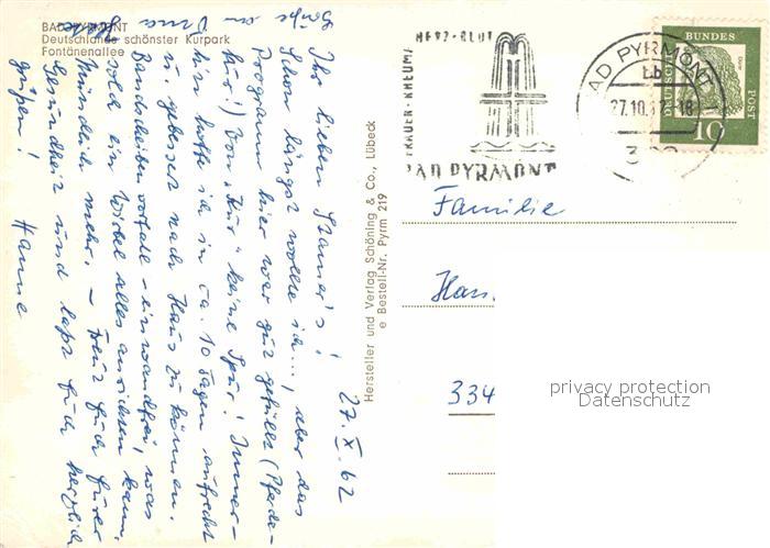 72915424 alte Postkarte Bad Pyrmont Fontaenenallee im Kurpark postalisch gelaufen Erhaltung siehe scans [WerneD78] KatCode: 11110003252003