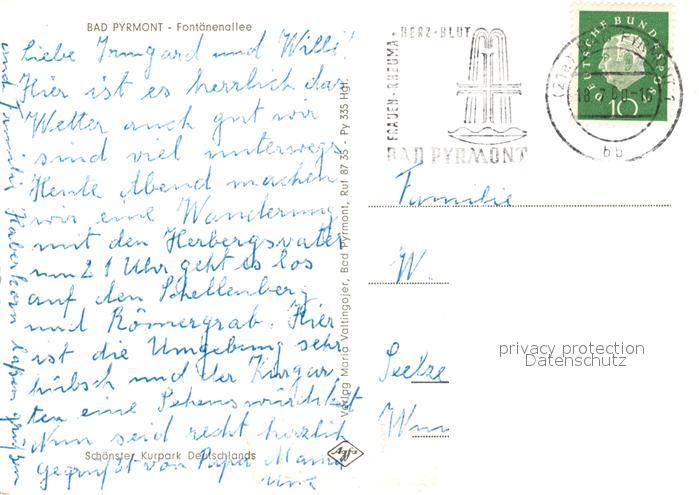 73046209 alte Postkarte Bad Pyrmont Fontaenenallee postalisch gelaufen Erhaltung siehe scans [KathaD81] KatCode: 11110003252003