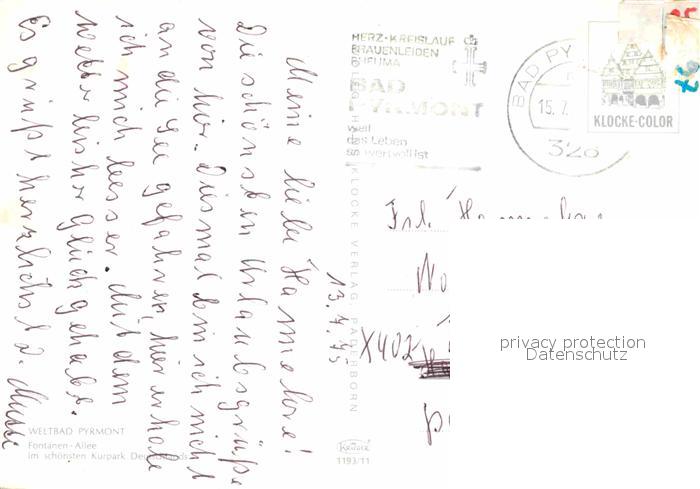 72885799 alte Postkarte Bad Pyrmont Fontanen Allee im Kurpark postalisch gelaufen Erhaltung siehe scans [FriedD77] KatCode: 11110003252003