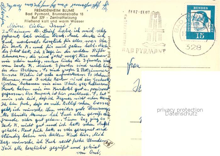 73644974 alte Postkarte Bad Pyrmont Fremdenheim Blume postalisch gelaufen Erhaltung siehe scans [WerneD78] KatCode: 11110003252003