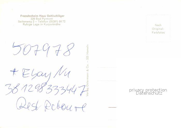 72784750 Bad Pyrmont Fremdenheim Haus Oehlschlaeger postalisch nicht gelaufen Erhaltung siehe scans [LiesaD40] KatCode: 11110003252003