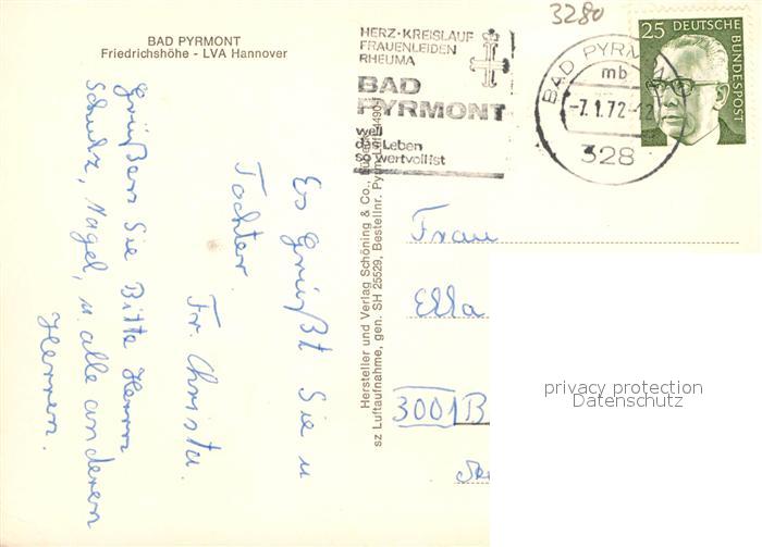 72940498 alte Postkarte Bad Pyrmont Friedrichshoehe LVA Hannover Fliegeraufnahme postalisch gelaufen Erhaltung siehe scans [PaolaD17] KatCode: 11110003252003