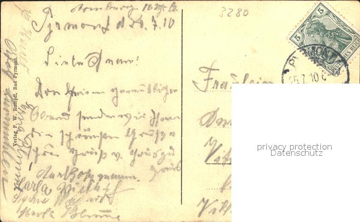 72073553 alte Postkarte Bad Pyrmont Fuerstenweg postalisch gelaufen Erhaltung siehe scans KatCode: 11110003252003