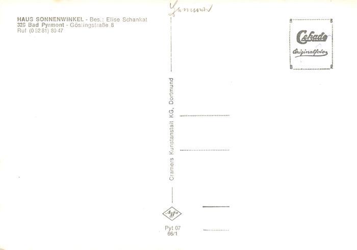 73863781 Bad Pyrmont Gaestehaus Pension Haus Sonnenwinkel postalisch nicht gelaufen Erhaltung siehe scans [FriedD77] KatCode: 11110003252003