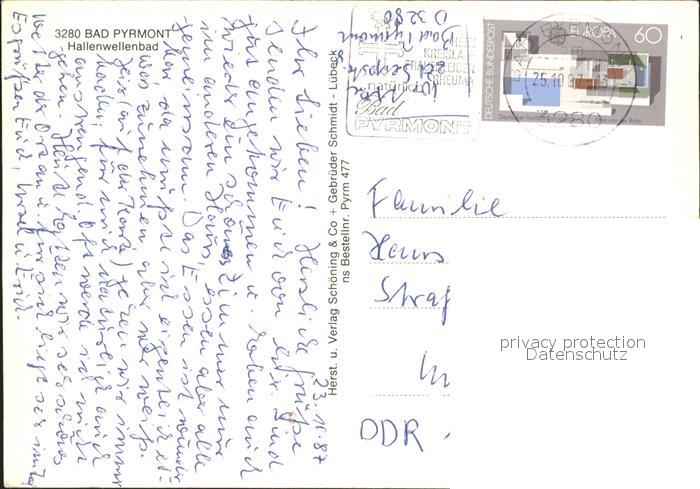 72235245 alte Postkarte Bad Pyrmont Hallenwellenbad postalisch gelaufen Erhaltung siehe scans KatCode: 11110003252003