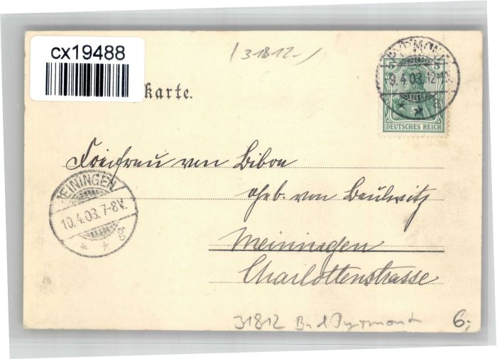 30724756 alte Postkarte Bad Pyrmont [Handschriftlich] postalisch gelaufen KatCode: 11110003252003