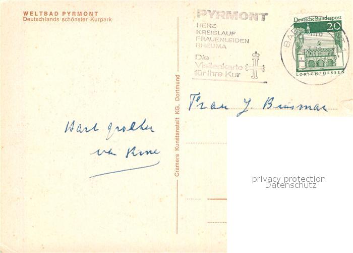 72934723 alte Postkarte Bad Pyrmont Hauptallee Fontaenenallee Palmengarten Schloss postalisch gelaufen Erhaltung siehe scans [FriedD77] KatCode: 11110003252003