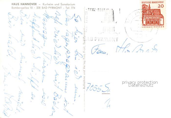 73835689 alte Postkarte Bad Pyrmont Haus Hannover Kurheim und Sanatorium postalisch gelaufen Erhaltung siehe scans [WerneD78] KatCode: 11110003252003