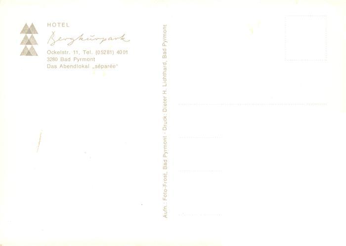 73875267 Bad Pyrmont Hotel Bergkurpark Abendlokal Separee Bar postalisch nicht gelaufen Erhaltung siehe scans [WerneD78] KatCode: 11110003252003