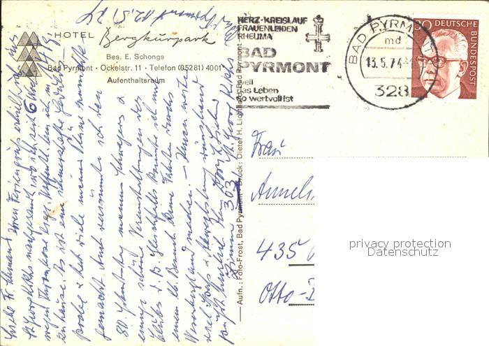 72528132 alte Postkarte Bad Pyrmont Hotel Bergkurpark Aufenthaltsraum postalisch gelaufen Erhaltung siehe scans KatCode: 11110003252003