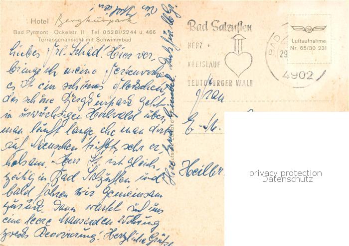 73765938 alte Postkarte Bad Pyrmont Hotel Bergkurpark Fliegeraufnahme postalisch gelaufen Erhaltung siehe scans [FriedD77] KatCode: 11110003252003