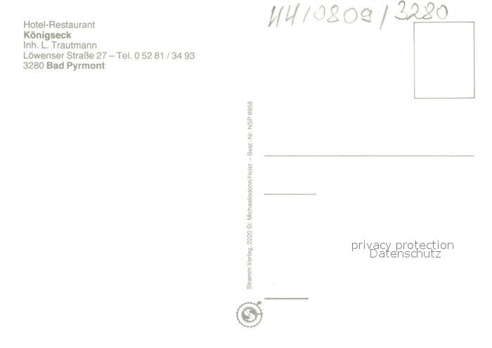 73087564 Bad Pyrmont Hotel Restaurant Koenigseck postalisch nicht gelaufen Erhaltung siehe scans [KathaD81] KatCode: 11110003252003