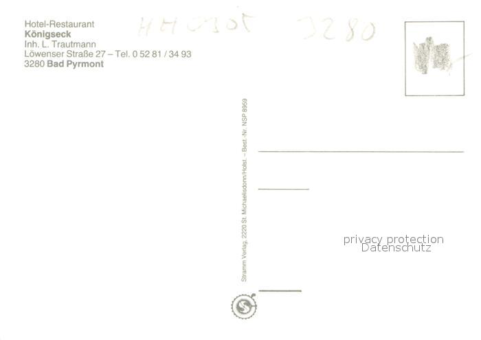 73642562 Bad Pyrmont Hotel Restaurant Koenigsek Gastraeume Terrasse postalisch nicht gelaufen Erhaltung siehe scans [WerneD78] KatCode: 11110003252003