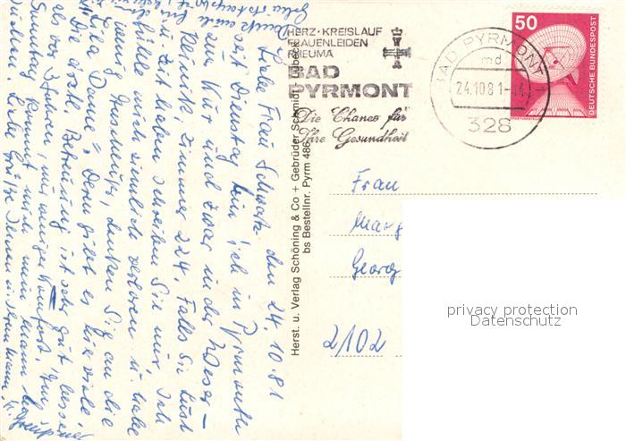 73685333 alte Postkarte Bad Pyrmont Hufeland Bad Gastraeume Hallenbad postalisch gelaufen Erhaltung siehe scans [WerneD78] KatCode: 11110003252003