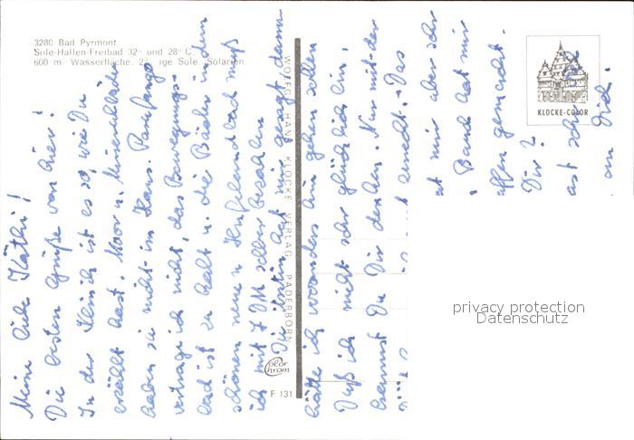 72483576 Bad Pyrmont Hufeland Bad Sole Hallenschwimmbad postalisch nicht gelaufen Erhaltung siehe scans KatCode: 11110003252003