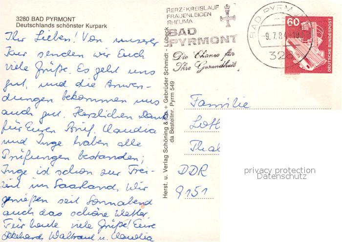 72970229 alte Postkarte Bad Pyrmont Hyllige Born Kurhotel Palmengarten Kuranlagen postalisch gelaufen Erhaltung siehe scans [FriedD77] KatCode: 11110003252003