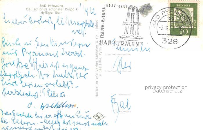 72884794 alte Postkarte Bad Pyrmont Hylliger Born postalisch gelaufen Erhaltung siehe scans [PaolaD17] KatCode: 11110003252003