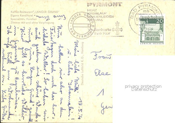72288239 alte Postkarte Bad Pyrmont Kaffee Restaurant Langer Grund postalisch gelaufen Erhaltung siehe scans KatCode: 11110003252003
