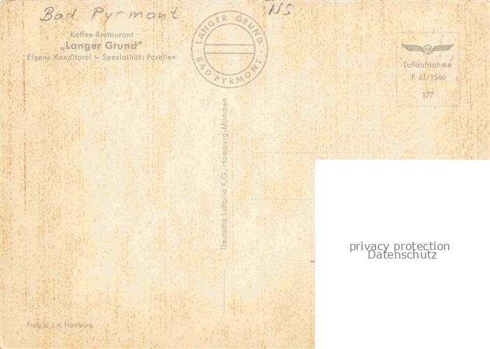 74035951 BAD PYRMONT Kaffee Restaurant Langer Grund postalisch nicht gelaufen Fliegeraufnahme Erhaltung siehe scans [FriedD77] KatCode: 11110003252003