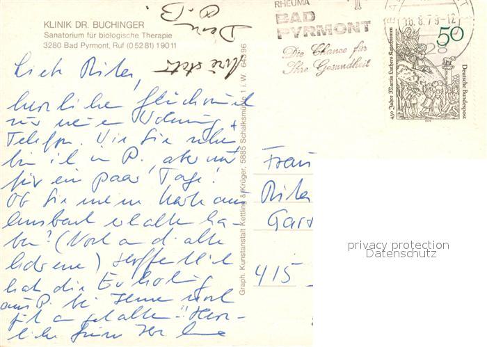 73576320 alte Postkarte Bad Pyrmont Klinik Dr. Buchinger Hallenbad postalisch gelaufen Erhaltung siehe scans [FriedD77] KatCode: 11110003252003