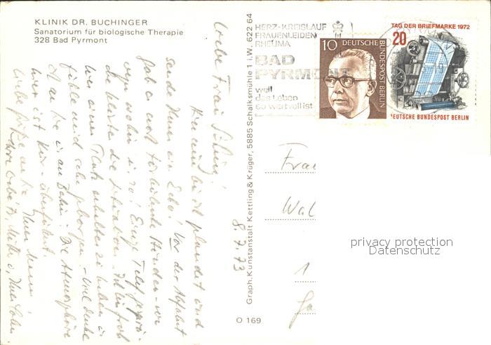 72137469 alte Postkarte Bad Pyrmont Klinik Dr Buchinger Sanatorium postalisch gelaufen Erhaltung siehe scans KatCode: 11110003252003