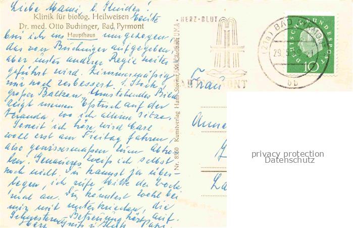 74042880 alte Postkarte BAD PYRMONT Klinik Dr Otto Buchinger Haupthaus postalisch gelaufen Erhaltung siehe scans [WerneD78] KatCode: 11110003252003