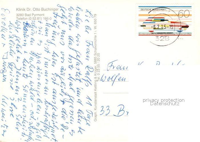 73164346 alte Postkarte Bad Pyrmont Klinik Dr Otto Buchinger postalisch gelaufen Erhaltung siehe scans [WerneD78] KatCode: 11110003252003