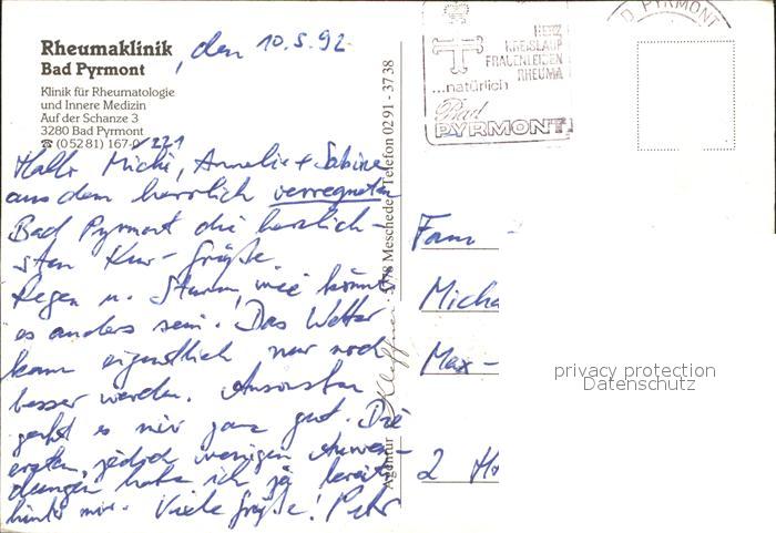 71946815 alte Postkarte Bad Pyrmont Klinik fuer Rheumatologie postalisch gelaufen Erhaltung siehe scans KatCode: 11110003252003