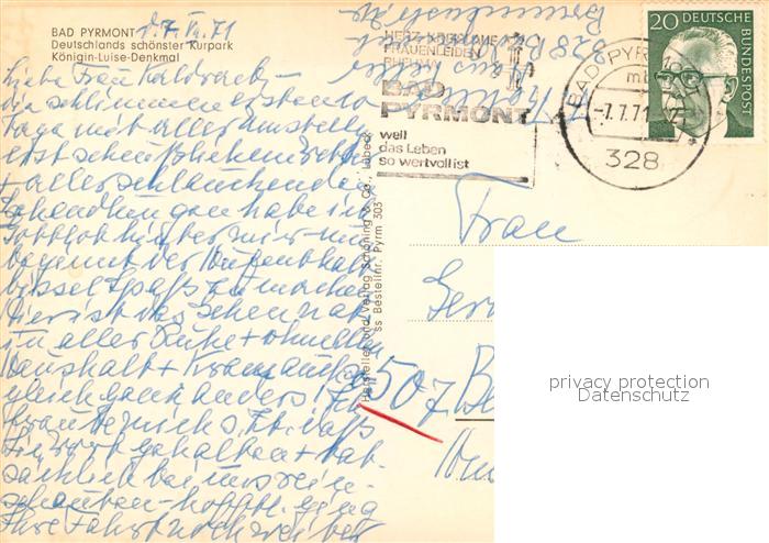 73018389 alte Postkarte Bad Pyrmont Koenigin Luise Denkmal im Kurpark postalisch gelaufen Erhaltung siehe scans [WerneD78] KatCode: 11110003252003