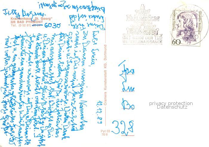 73323605 alte Postkarte Bad Pyrmont Krankenhaus St Georg postalisch gelaufen Erhaltung siehe scans [FriedD77] KatCode: 11110003252003