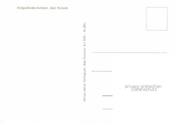 72784767 Bad Pyrmont Kriegs-Blinden-Kurheim postalisch nicht gelaufen Erhaltung siehe scans [LiesaD40] KatCode: 11110003252003
