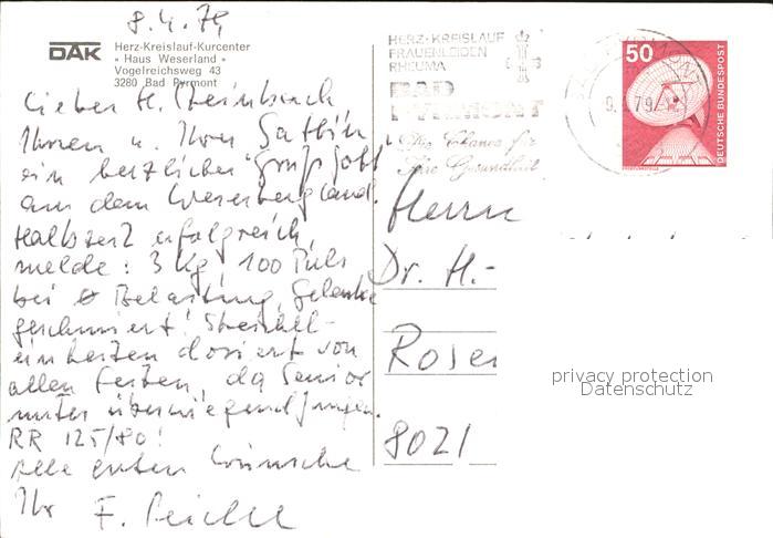 72535113 alte Postkarte Bad Pyrmont Kurcenter Haus Weserland Hallenbad Terrasse postalisch gelaufen Erhaltung siehe scans [WerneD78 kt117box] KatCode: 11110003252003