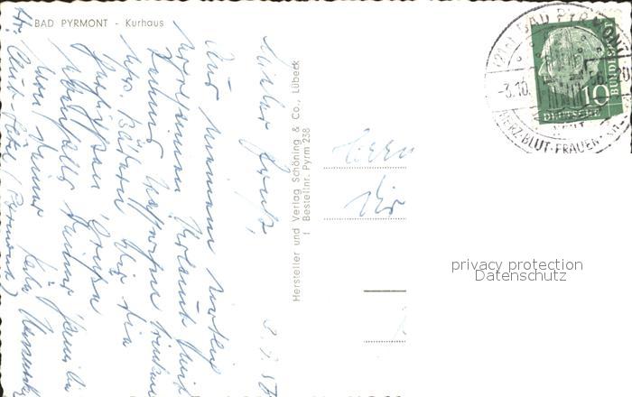 72172773 alte Postkarte Bad Pyrmont Kurhaus postalisch gelaufen Erhaltung siehe scans KatCode: 11110003252003