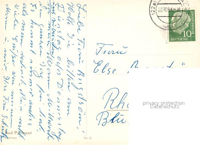 73070038 alte Postkarte Bad Pyrmont Kurhaus postalisch gelaufen Erhaltung siehe scans [WerneD78] KatCode: 11110003252003