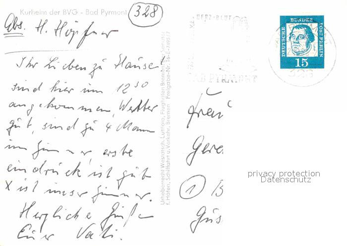 72793096 alte Postkarte Bad Pyrmont Kurheim postalisch gelaufen Erhaltung siehe scans [LiesaD40] KatCode: 11110003252003