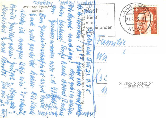 72623581 alte Postkarte Bad Pyrmont Kurhotel postalisch gelaufen Erhaltung siehe scans [NatalD47] KatCode: 11110003252003