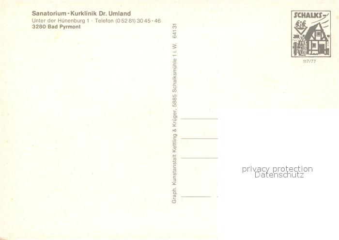 73109299 Bad Pyrmont Kurklinik Umland postalisch nicht gelaufen Erhaltung siehe scans [KathaD81] KatCode: 11110003252003
