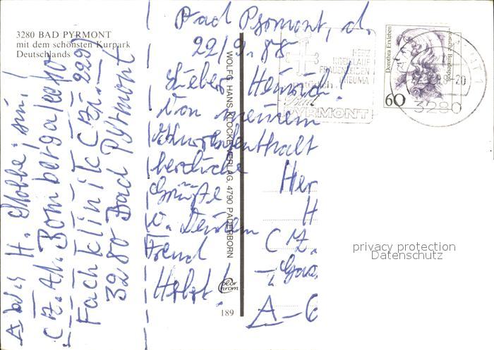 72377371 alte Postkarte Bad Pyrmont Kurpark postalisch gelaufen Erhaltung siehe scans KatCode: 11110003252003