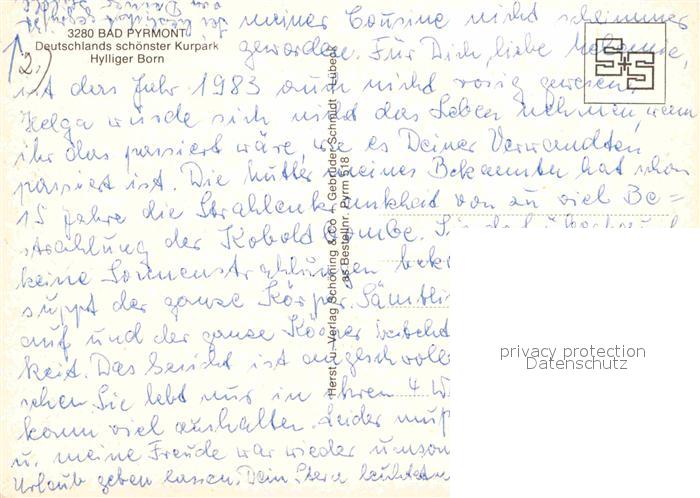 72697391 alte Postkarte Bad Pyrmont Kurpark Hylliger Born Kurhaus postalisch gelaufen Erhaltung siehe scans [WerneD78] KatCode: 11110003252003