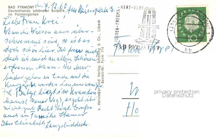 72912429 alte Postkarte Bad Pyrmont Kurpark Im Palmengarten postalisch gelaufen Erhaltung siehe scans [WerneD78] KatCode: 11110003252003
