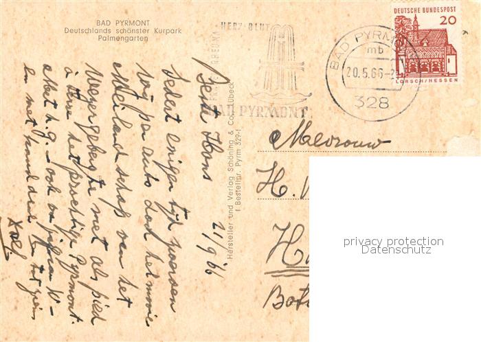 72930823 alte Postkarte Bad Pyrmont Kurpark Palmengarten postalisch gelaufen Erhaltung siehe scans [LiesaD40] KatCode: 11110003252003