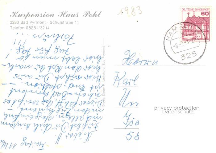 72909200 alte Postkarte Bad Pyrmont Kurpension Haus Pohl postalisch gelaufen Erhaltung siehe scans [NatalD47] KatCode: 11110003252003