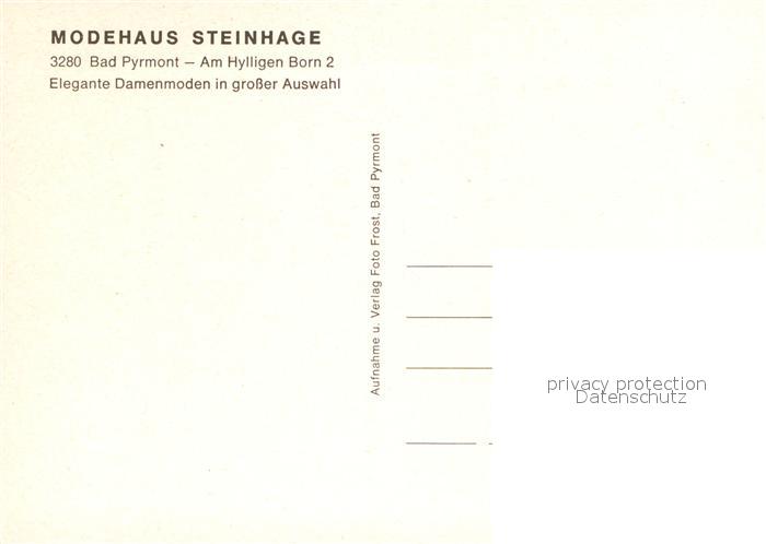 72942606 Bad Pyrmont Modehaus Steinhage postalisch nicht gelaufen Erhaltung siehe scans [LiesaD40] KatCode: 11110003252003