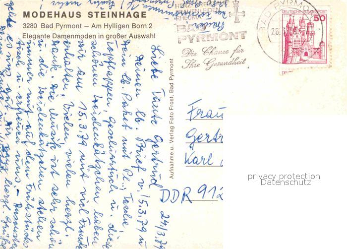 72827048 alte Postkarte Bad Pyrmont Modehaus Steinhage Kurhaus postalisch gelaufen Erhaltung siehe scans [FriedD77] KatCode: 11110003252003