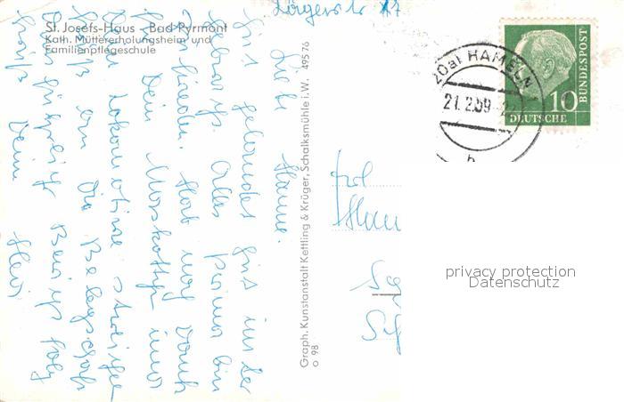 32663803 alte Postkarte Bad Pyrmont Muettererholungsheim und Familienpflegeschule postalisch gelaufen Erhaltung siehe scans [LiesaD40] KatCode: 11110003252003