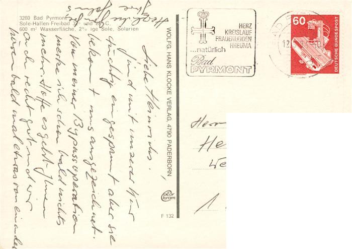 73945975 alte Postkarte Bad Pyrmont Niedersachsen Hufeland-Bad Freibad Hallenbad postalisch gelaufen Erhaltung siehe scans [FriedD77] KatCode: 11110003252003