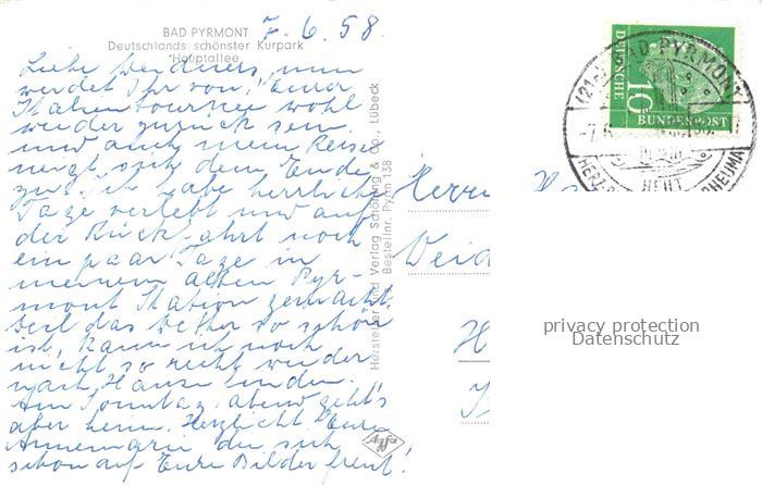 74153721 alte Postkarte BAD PYRMONT Niedersachsen Kurpark Hauptallee postalisch gelaufen Erhaltung siehe scans [WerneD78] KatCode: 11110003252003