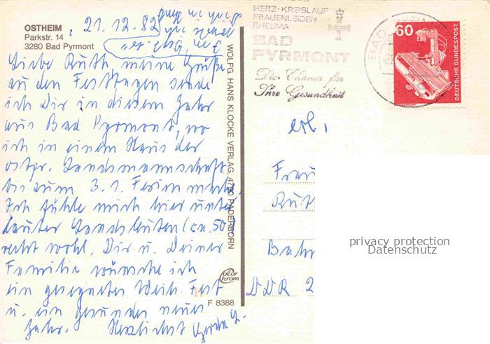 74021005 alte Postkarte BAD PYRMONT Ostheim Pferdeskulptur postalisch gelaufen Erhaltung siehe scans [FriedD77] KatCode: 11110003252003