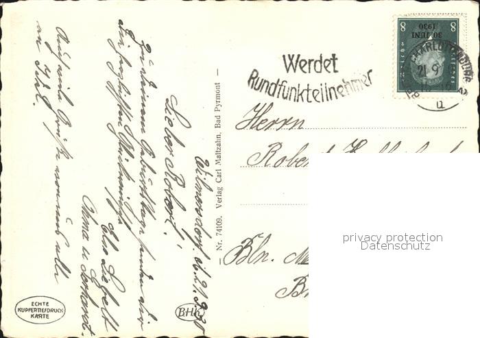 72535390 alte Postkarte Bad Pyrmont Palemgarten postalisch gelaufen Erhaltung siehe scans [LiesaD40 kt120box] KatCode: 11110003252003