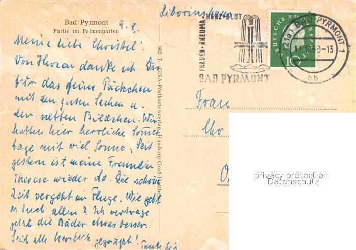 72901136 alte Postkarte Bad Pyrmont Palmengarten postalisch gelaufen Erhaltung siehe scans [PaolaD17] KatCode: 11110003252003